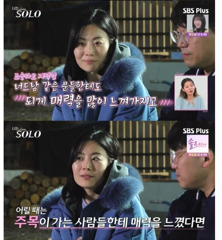 옥순은 '너드' 같은 남자에게 매력을 느낀다고 밝혔고, 영호는 외향적이기보다 조용하고 내성적인 타입. 서로의 부족한 부분을 채워줄 수 있는 조합입니다.