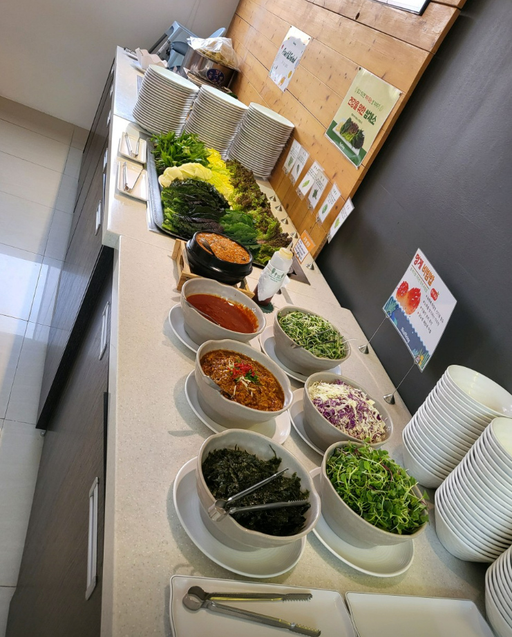 식스센스 양평 뷔페 찜질방의 하이라이트는 바로 건강한 웰빙 뷔페입니다. 신선한 재료로 만든 불고기, 오리고기, 제육볶음 등 육류 요리와 연어 샐러드, 각종 나물, 쌈채소 등 다양한 메뉴를 제공합니다. 특히 쌈채소와 우렁쌈장은 방문객들에게 큰 호응을 얻고 있습니다.