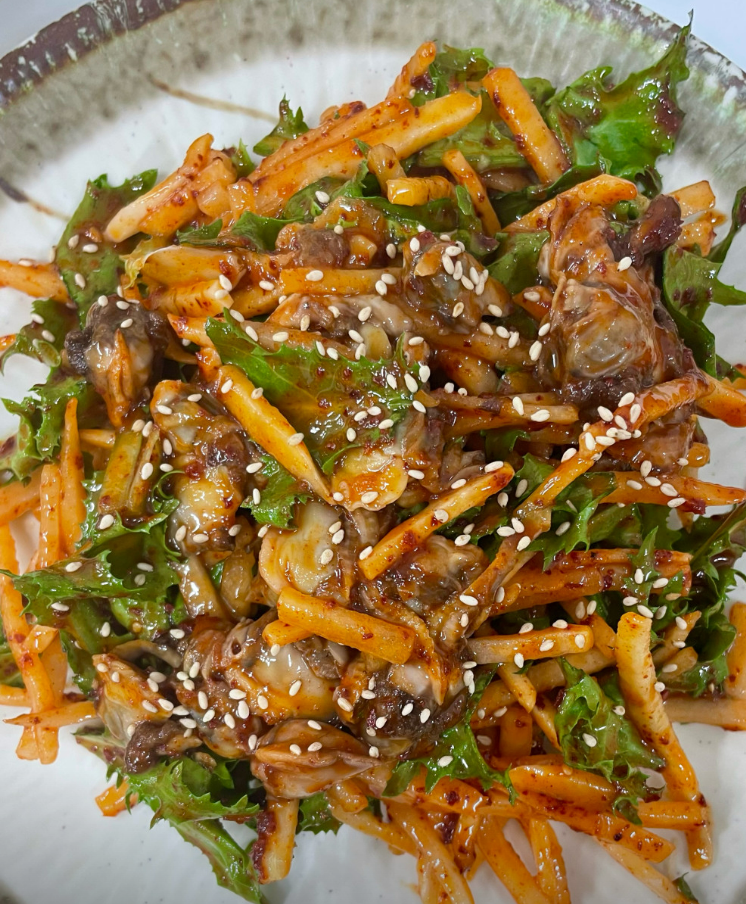 - 꼬막 무침 - 비빔밥 재료로 제공되는 매콤새콤한 무침