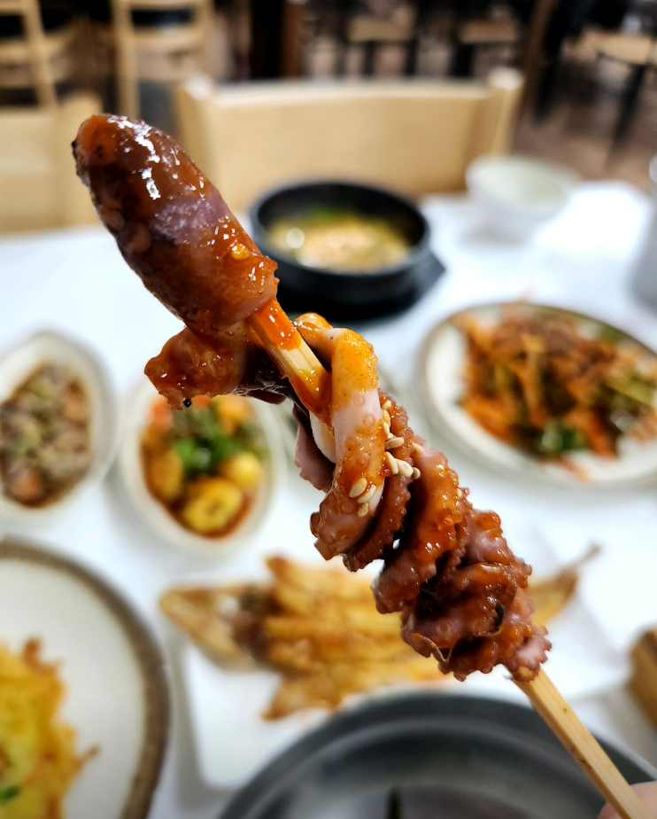 여기에 낙지호롱은 꼭 별도로 주문해보세요! 직화로 구운 낙지의 쫄깃함과 불향이 일품입니다. 지구마불3에서 곽튜브가 "이건 꼭 주문해야 해!"라고 강조했던 메뉴입니다.