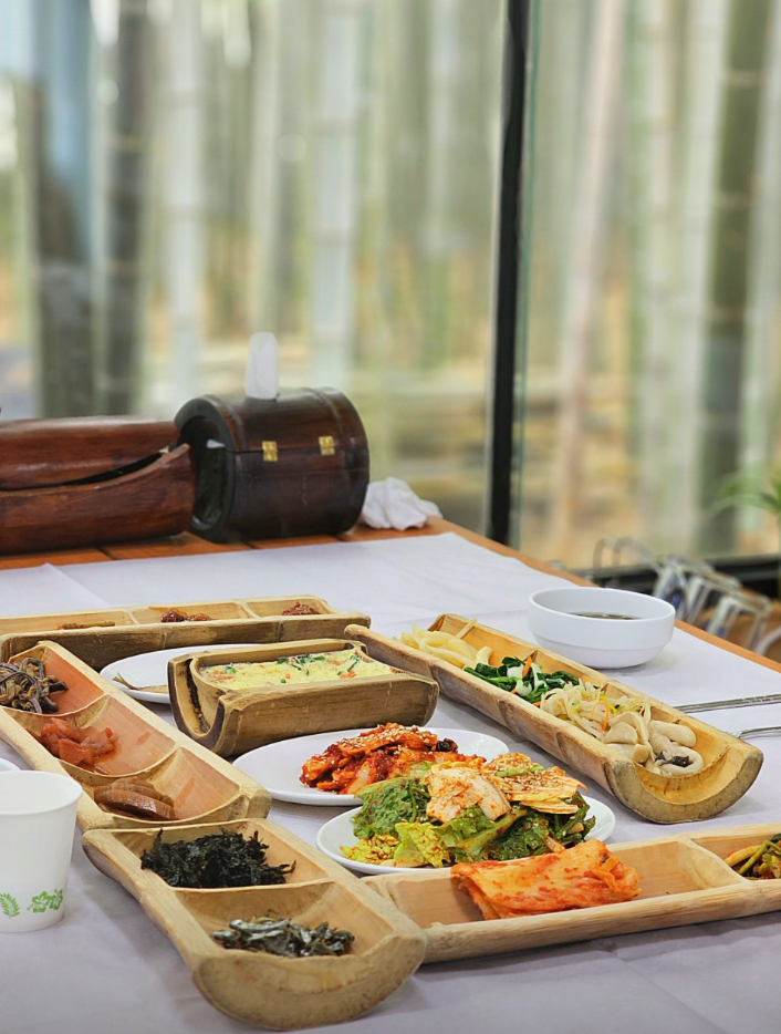 담양은 대나무의 고장이라 불리는 만큼, 죽림원가든에서는 대나무를 활용한 다양한 요리를 맛볼 수 있습니다. 생활의 달인 295회에서 소개된 대나무통에 찹쌀과 잡곡, 견과류를 넣고 쪄낸 대통밥은 은은한 대나무 향이 밥에 배어 특별한 풍미를 선사합니다.