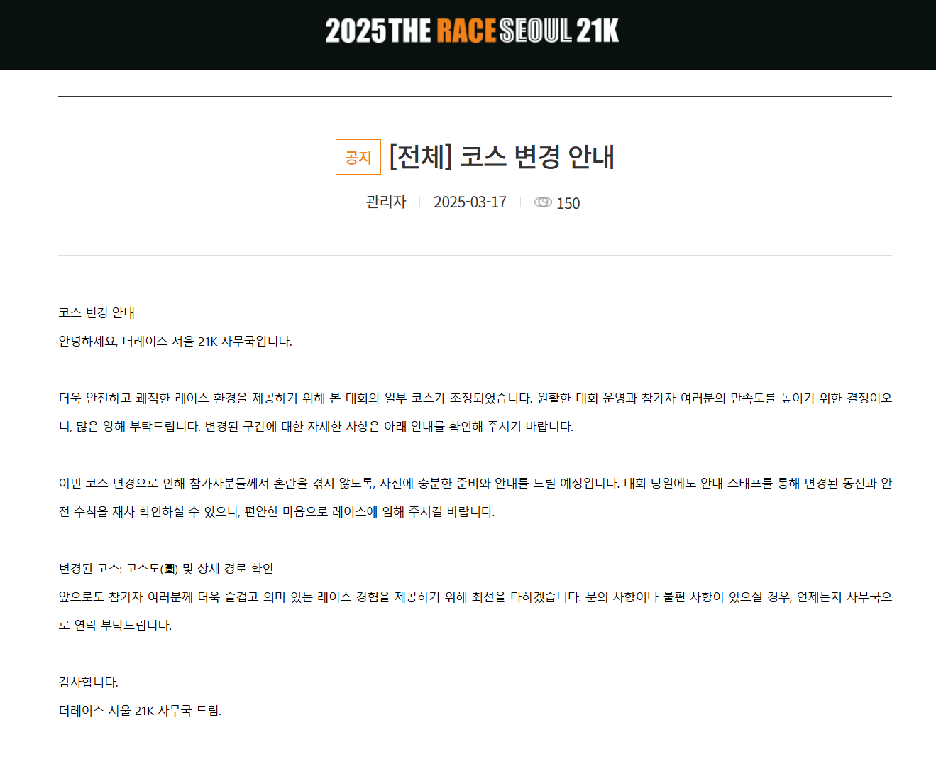 - 참가자 여러분께 최상의 레이스 경험 제공을 위한 조치